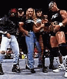 D-GENARATION X member HHH, X-PAC, CHYNA,ROADDOG, BILLY GUN (the NEW AGE OUTLAWS). The New Age Outlaws are the (3 )tag team champion, X-pac is the (2) European champion, HHH is (3)Intercontinental champion. They favorite word is two word SUCK IT……… HHH finisher is pedigree, X-pac finisher is X-factor, Billy Gun finisher is Power Driver. RoadDog finisher is ??????